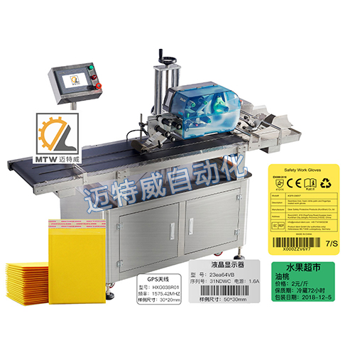 貼標(biāo)機(jī)與流水線的護(hù)欄結(jié)構(gòu),對(duì)接順暢,中間過(guò)渡處理不會(huì)影響物品刮傷或者損壞;貼標(biāo)機(jī)與流水線的速度匹配,流水線的速度跟貼標(biāo)的速度要適應(yīng)。